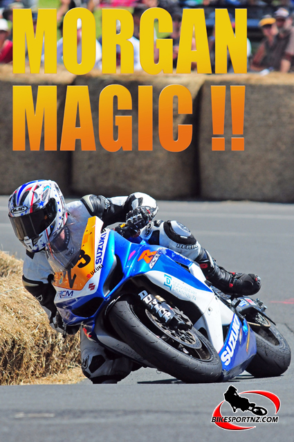 The 600cc bike riders had to line up alongside the 1000cc superbikes and, although they were scored separately, it still meant Morgan had his work cut out trying to match the bigger bikes, particularly on the long main straight, actually State Highway 2 for the other 364 days of the year.