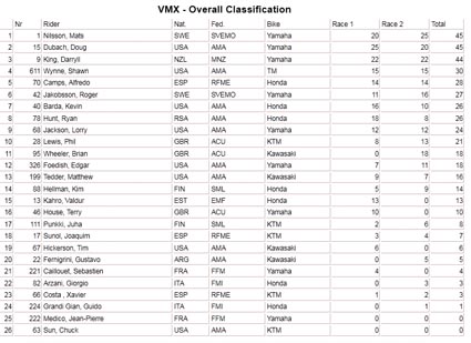 Sweden’s Mats Nilsson (Yamaha), a double race winner in the Netherlands, settled for 3-1 results at the USGP, but that was enough for him to win the day on a count-back from local favourite, American Yamaha rider Doug Dubach, who was equal on points with his 1-3 results.