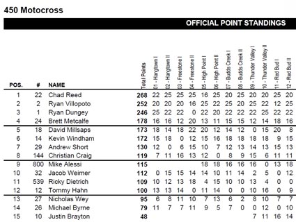 Reed has punched his championship lead out to 16 points over the new No.2 man, Dungey, while Villopoto slips back to third.