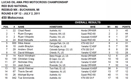 Australian Chad Reed has won the day at Red Bud, round six of the AMA Motocross Championships in Buchanan, Michigan, on Saturday.