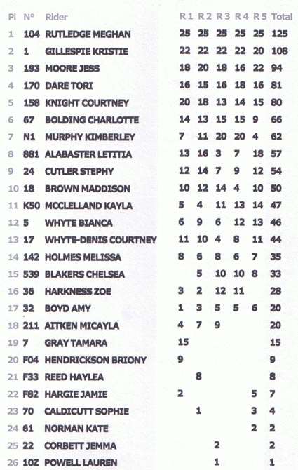 The 2009 Champion, Tori Dare, and Queensland star Courtney Knight rounded out the top five finishers.