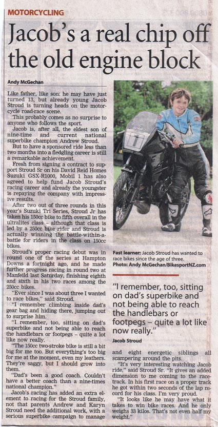 We have managed to push motorcycle sport into the mass media forefront, often ahead of the “traditional” Kiwi sports such as rugby, cricket and netball.