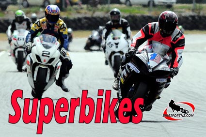 Superbikes – Race one: Robbie Bugden (Australia) Suzuki 1; Dan Stauffer (Australia) Yamaha 2; John Ross (Christchurch) BMW 3; Andrew Stroud (Hamilton) Suzuki 4; Sloan Frost (Wellington) BMW 5. Race two, NZ Grand Prix: Part one: Bugden 1; Stauffer 2; Craig Shirriffs (Feilding) Suzuk 3; James Smith (Christchurch) Suzuki 4; Ross 5. Part two: Stroud 1; Stauffer 2; Shirriffs 3; Smith 4; Ray Clee (Kumeu) Suzuki 5. Overall: Stauffer .1; Shirriffs 2; Smith 3. NOTE: Stroud disqualified after race two, part two.