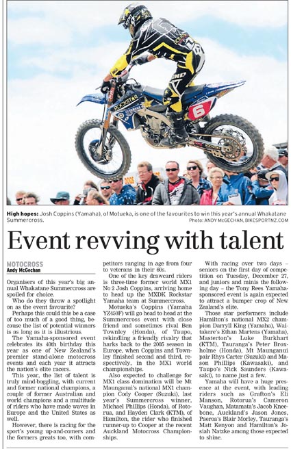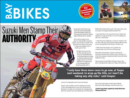 And, as well as posting home-grown material on this site, every single week, BikesportNZ.com gives the motorcycling community – be it fans of motocross, supercross, enduro, cross-country racing, trials riding or superbikes – wicked widespread coverage in the nation’s mainstream media.