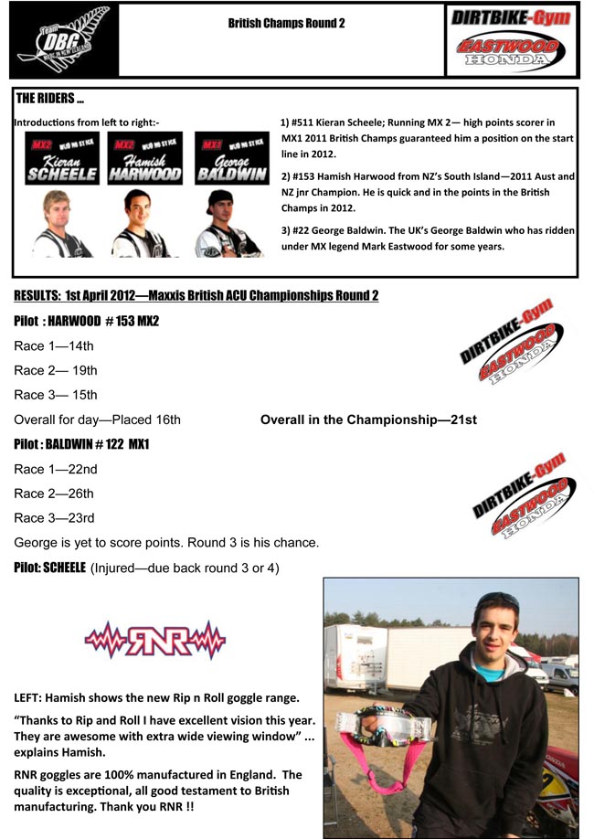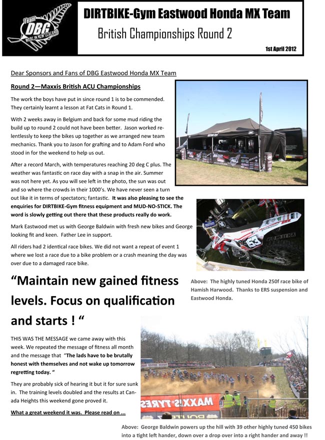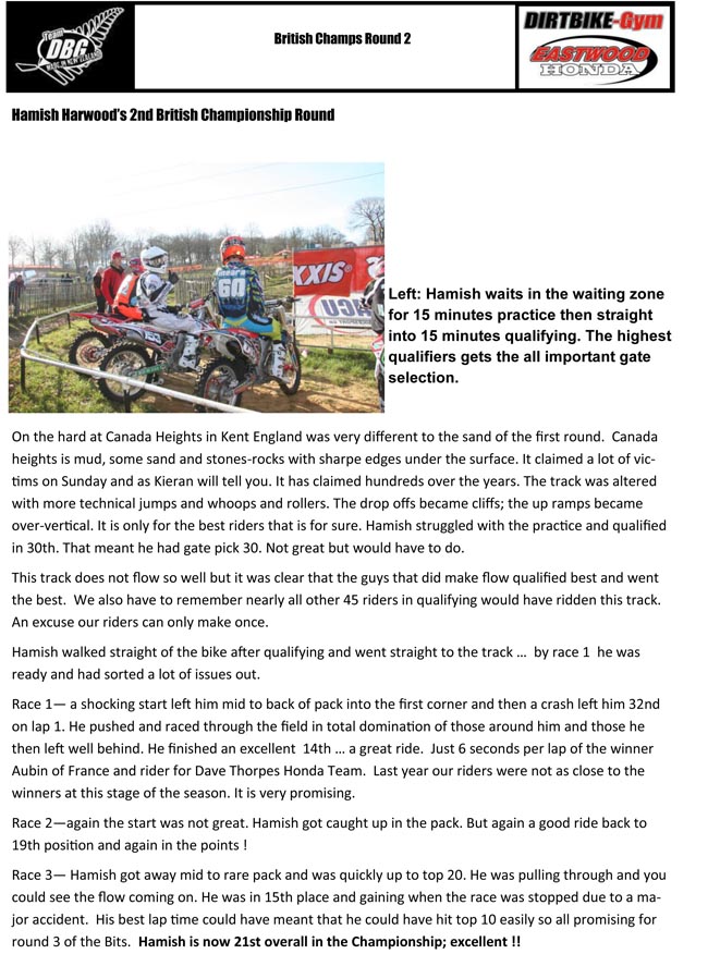 Here is a report from their latest excursions in the UK, racing at the second round of the British Motocross Championships.