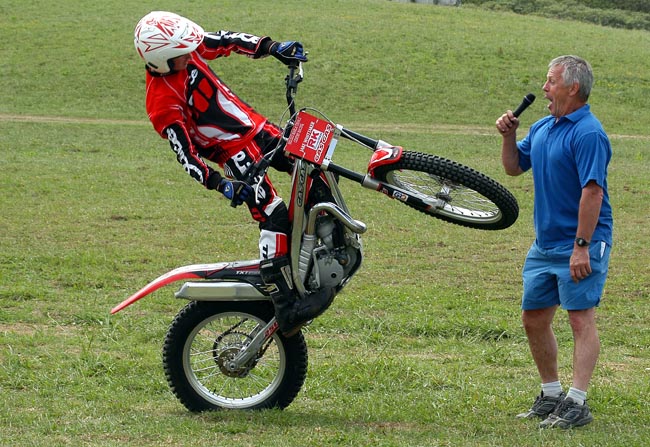 Both photos (yes, we’re showing two from this sport this week) show a top rider and the other person in both photos is a commentator, organiser and promoter.