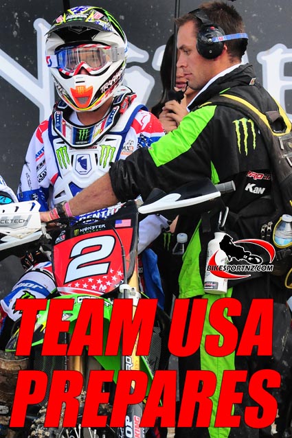 USA PREPARES Bikesportnz Posted on September 22, 2012 by EditorSeptember 22, 2012 Team USA gets a little practice in ahead of the Motocross of Nations next weekend. They test out the deep sand track at Lommel, in Belgium, and talk about their expectations for the great race.