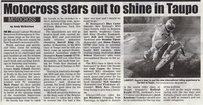 As well as posting a huge chunk of home-grown material on this site, every single week, BikesportNZ.com breaks through the invisible barrier to give the motorcycling community – be it fans of motocross, supercross, enduro, cross-country racing, trials riding or superbikes – wicked widespread coverage in the nation’s mainstream media.