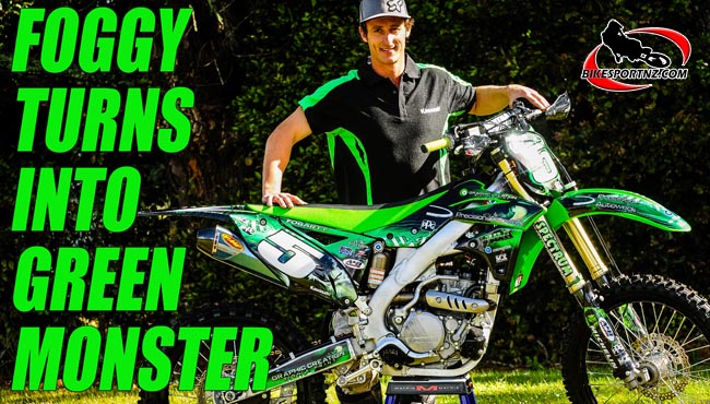 The 30-year-old, who works as a builder at Auckland’s Q Construction, arrived at the Auckland Motocross Championships at the weekend sporting new colours, his 2013-model Spectrum Kawasaki KX250F decked out in a fabulous “Incredible Hulk” colour scheme.