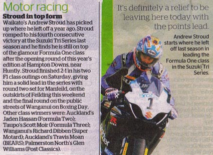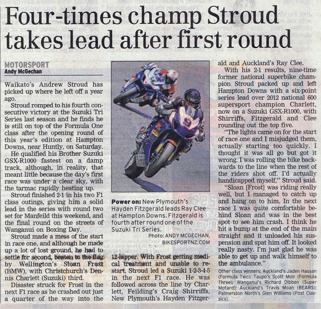 We have managed to push motorcycle sport into the mass media forefront, often ahead of the “traditional” Kiwi sports such as rugby, cricket and netball.