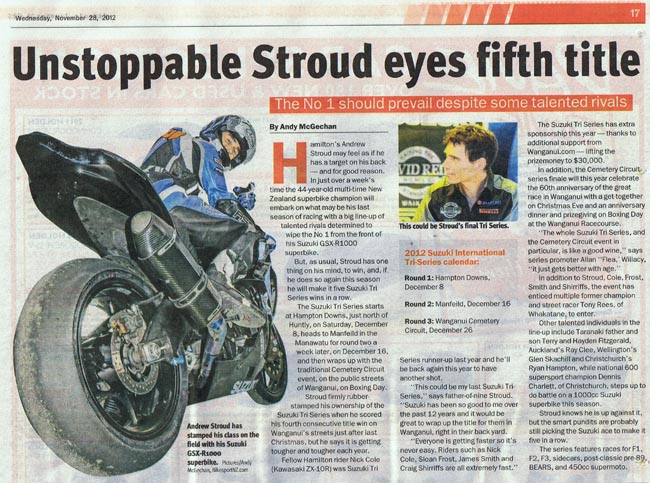 We have managed to push motorcycle sport into the mass media forefront, often ahead of the “traditional” Kiwi sports such as rugby, cricket and netball.
