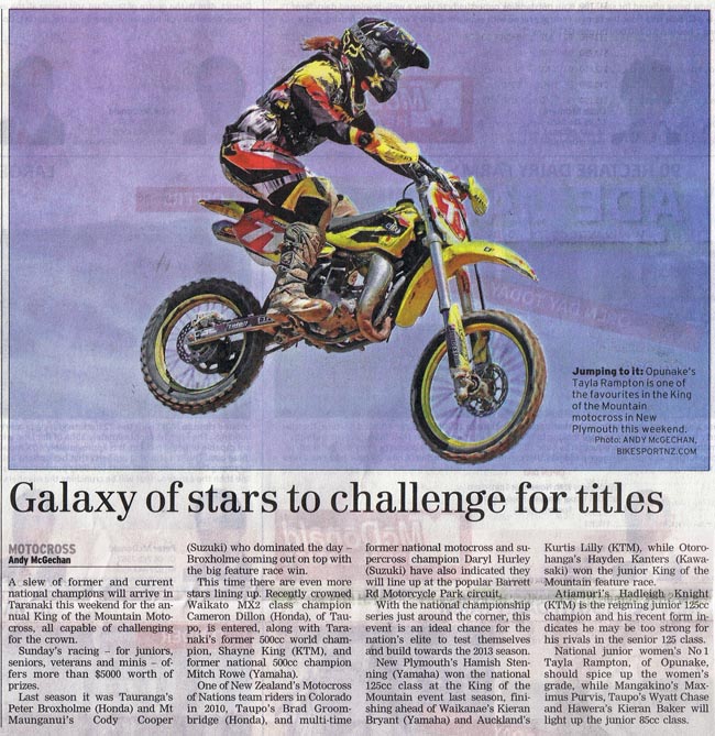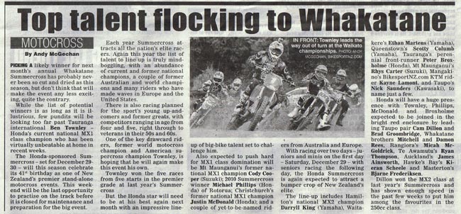 As well as posting a huge chunk of home-grown material on this site, every single week, BikesportNZ.com breaks through the invisible barrier to give the motorcycling community – be it fans of motocross, supercross, enduro, cross-country racing, trials riding or superbikes – wicked widespread coverage in the nation’s mainstream media.
