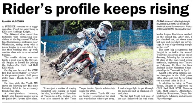 But, as well as posting a huge chunk of home-grown material on this site, every single week, BikesportNZ.com breaks through the invisible barrier to give the motorcycling community – be it fans of motocross, supercross, enduro, cross-country racing, trials riding or superbikes – wicked widespread coverage in the nation’s mainstream media.