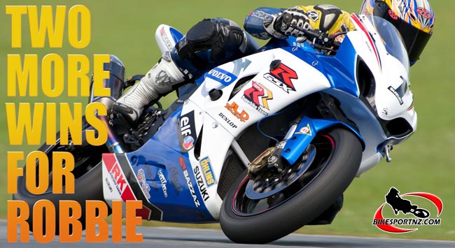 Australian defending champion Robbie Bugden (Triple R Suzuki GSX-R1000) convincingly won both races in the superbike class at Teretonga, the third round of five in the series.