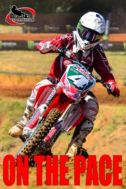 “The third race was a bit of a disaster. I tried to push past (Waitakere rider) Ethan Martens (Yamaha YZ250) when my hand slipped off the handlebars. I think I was blessed not to have been injured.