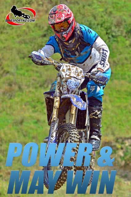 In the enduro nationals, Power is currently running second overall in the over-300cc four-stroke class and May (Kiwi Rider BikesportNZ.com Yamaha YZ250F) is winning the under-300cc four-stroke class.