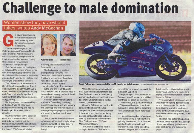 We manage to push motorcycle sport into the mass media forefront, often ahead of the “traditional” Kiwi sports such as rugby, cricket and netball.