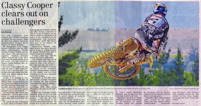 But, as well as posting a huge chunk of home-grown material on this site, every single week, BikesportNZ.com breaks through the invisible barrier to give the motorcycling community – be it fans of motocross, supercross, enduro, cross-country racing, trials riding or superbikes – wicked widespread coverage in the nation’s mainstream media.