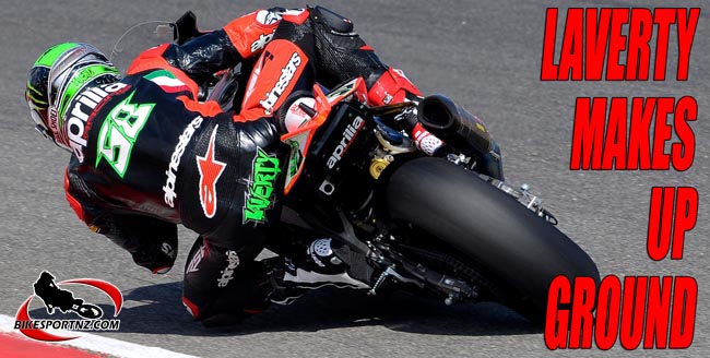 Laverty’s win came as two of his closest rivals, Tom Sykes and Marco Melandri, suffered troubles on this occasion, the latter eliminating himself from the running when he damaged his bike in a fall on the sighting lap, while a bad rear tyre would leave Melandri floundering outside the top 10.