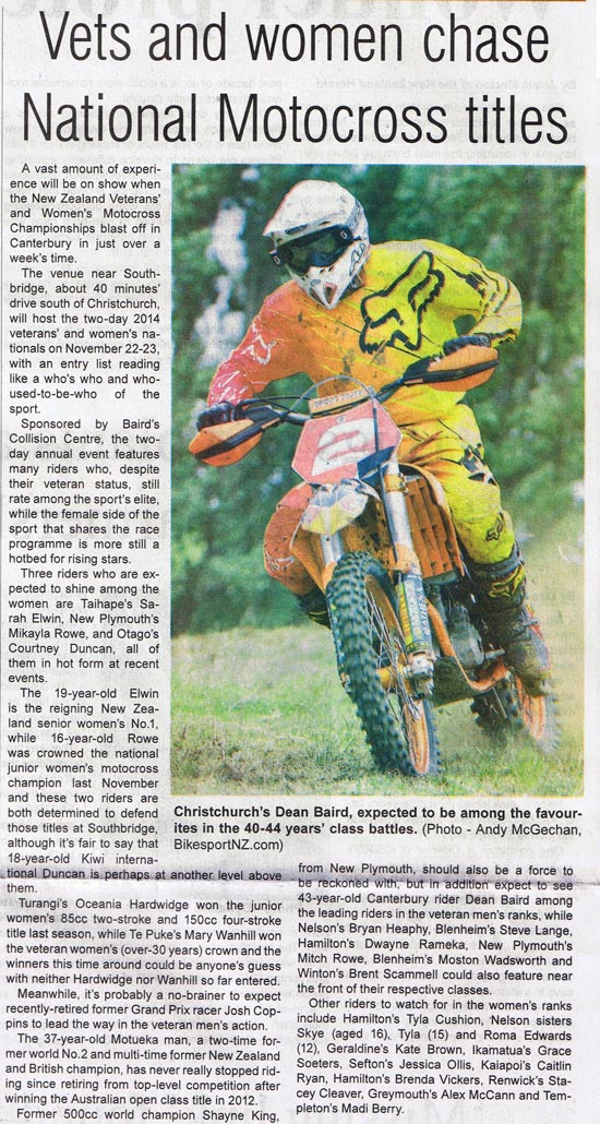 But, as well as posting a huge chunk of home-grown material on this site, every single week, BikesportNZ.com breaks through the invisible barrier to give the motorcycling community – be it fans of motocross, supercross, enduro, cross-country racing, trials riding or superbikes – wicked widespread coverage in the nation’s mainstream media.
