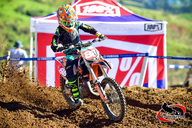 15-16 years’ 125cc class: 1. Maximus Purvis (Mangakino, Yamaha) 125 points (maximum); 2. James Scott (Oparau, KTM) 110; 3. Hayden Smith (Taihape, KTM) 98.