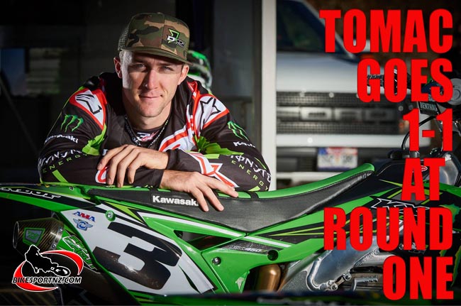 Dean Wilson took advantage of a good start to move into the top five within the first five minutes of the race. About nine minutes into the moto, Wilson and Tomac overtook Broc Tickle to move into fourth and fifth, respectively. That resulted in an exciting battle for fourth place between Wilson and Tomac. Although Wilson held his own for awhile, Tomac got around him with about 19 minutes left on the countdown clock.