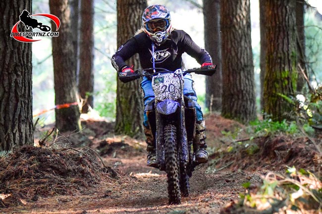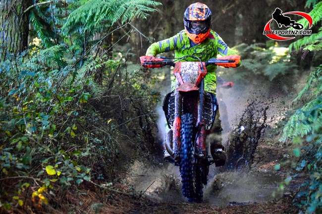 The former Manawatu forestry worker, affectionately dubbed “The Axeman” on the motorcycling scene, had no problem slicing through the trees and, although he had Coatesville’s defending Dirt Guide Series champion Sam Greenslade for close company on the first of the 18-kilometre laps, he had broken clear of him halfway through lap two.