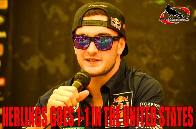 Herlings capped off a 1-1 sweep in his debut race by crossing the finish line 2.6 seconds ahead of Musquin. Baggett finished third.