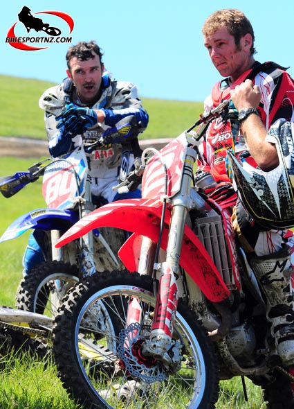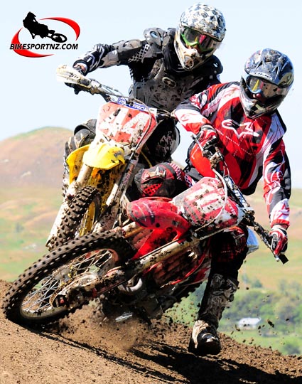 The racing at Hastings that day was brutal, as both Damien King (left) and Peter Broxholme would agree. Photo by Andy McGechan, BikesportNZ.com