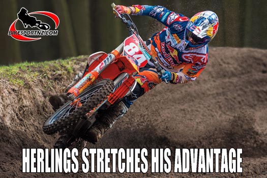 MXGP race one started with a holeshot from KTM’s Antonio Cairoli just ahead of his team-mate, Glen Coldenhoff. A few spots further back was the other Red Bull KTM of Herlings, the MXGP points leader.