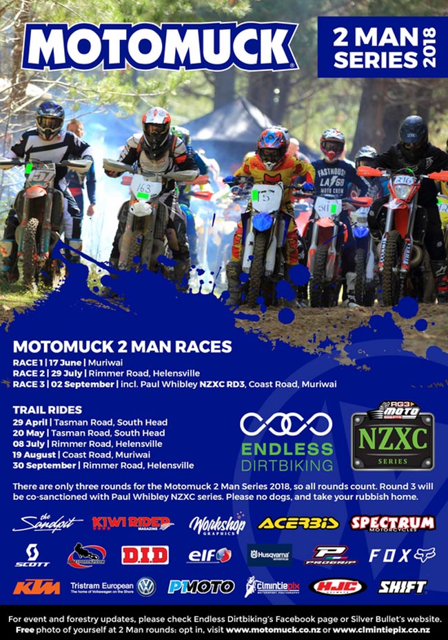 Round two of the popular Motomuck Two-Man Cross-country Series is set for the Woodhill Forest, near Helensville, this Sunday.