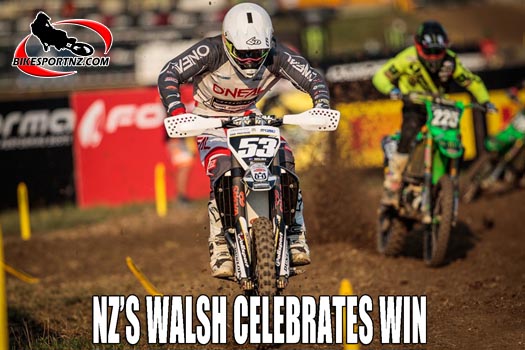 New Zealand’s Dylan Walsh celebrated his second race win of the season at the weekend’s Swiss Motocross GP.