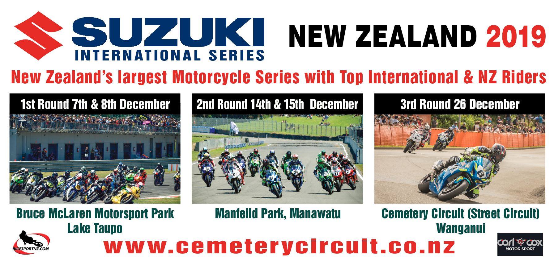 The popular three-round series – with Manfeild following as host venue a week after the Taupo round and the action wrapping up on the public streets of Whanganui on Boxing Day – is New Zealand’s richest motorcycle competition and it has again attracted a huge overseas contingent, with top riders set to arrive from France, Germany and Australia, including Isle of Man and British Superbike Championship winners among them.