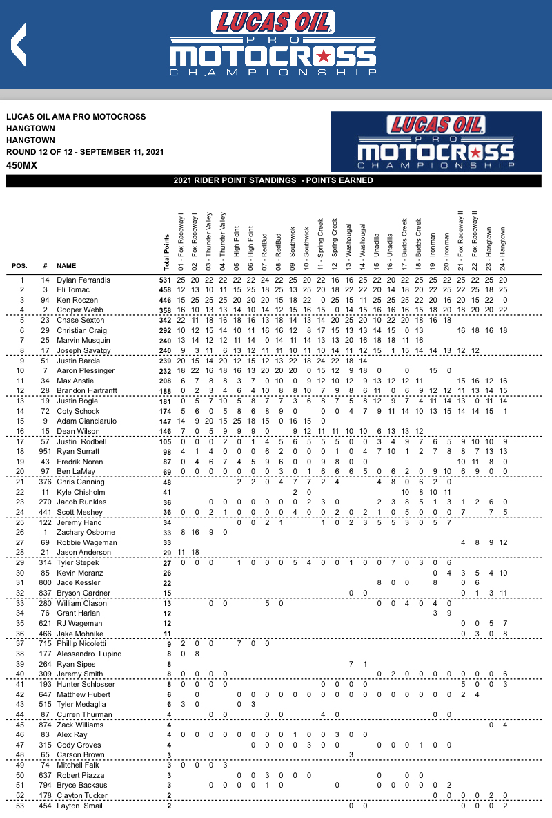 10 Robbie Wageman: 12–9 Yamaha YZ450F