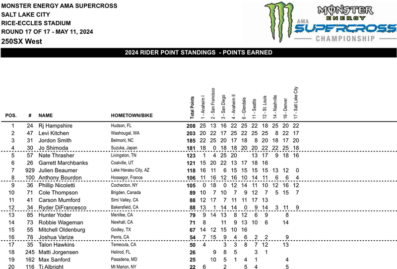 This was the second premier-class AMA Supercross title in a row for Honda, and a record 17th overall. Past Red Riders to accomplish the feat include David Bailey, Jean-Michel Bayle, Ricky Carmichael, Donnie Hansen, Rick Johnson, Jeremy McGrath, Johnny O’Mara, Chase Sexton and Jeff Stanton.