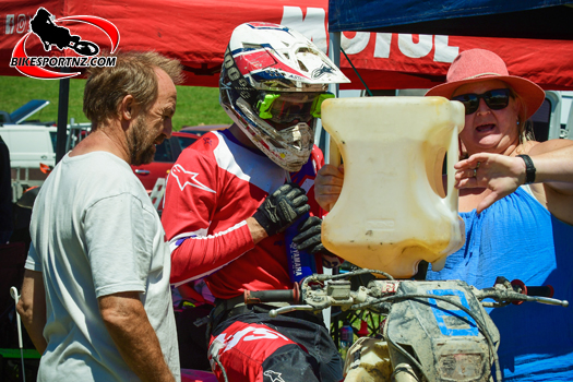 His Honda CRF450 motocross bike was fitted with an over-sized after-market fuel tank, but any perceived advantage that might have provided was spurned by Dudson, who decided to refuel at regular intervals anyway during the gruelling three-hour race.