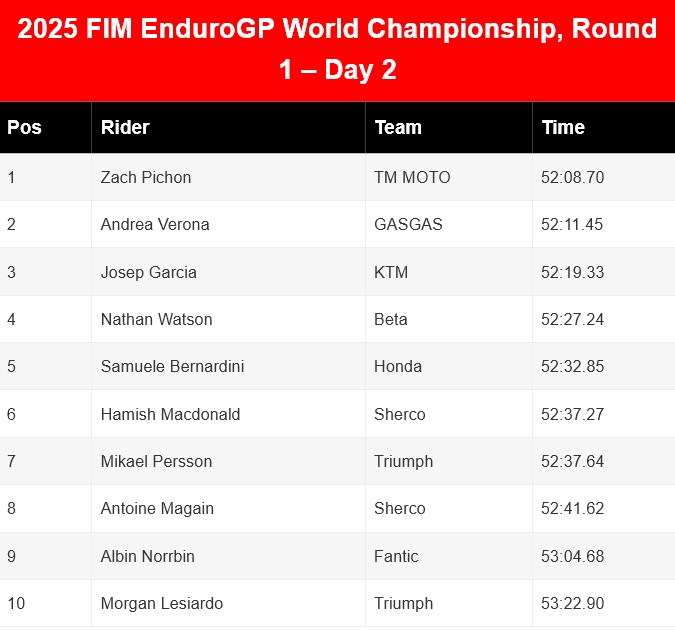 Meanwhile, on day two of the opening round of the 2025 Paulo Duarte FIM EnduroGP World Championship in Portugal, the son of former motocross world champion Mikael Pichon, Zach Pichon, clinched his first-ever EnduroGP overall victory, making a significant early mark on the championship.