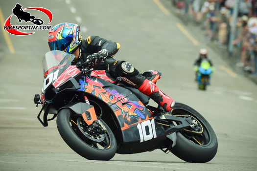 He qualified his 1000cc superbike fastest and then won both F1 races at Whanganui before putting underlining that performance by also winning the Robert Holden Memorial (RHM) feature race.